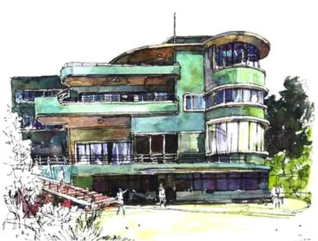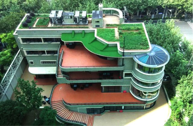 绿房子的外墙贴绿色的釉面砖,外观模仿大邮轮,流畅的曲线,宽敞的露台和连续弧形玻璃窗使其成为中国现代建筑的杰作。