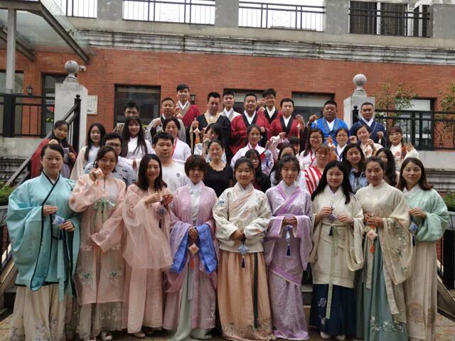 传统礼仪,魅力永恒。来自汉未央的老师将汉文化的传统娓娓道来,揖礼起源于周代,《周礼》中记载“土揖庶姓,时揖异姓,天揖同姓”,不同的场合、不同的对象要用不同的行礼方式,身着汉服的学生们按照老师指导,凝神肃立,郑重行礼。坐姿礼仪也颇有讲究,危坐、安坐、跌坐、侍坐、胡坐,不同的坐姿体现出的是传统文化恪行守礼、坚定认真的一面。待同学们安坐后,汉未央的老师又介绍了“色空鼓”这一独特的乐器,这一乐器启灵于西周的编钟,汇集了中国传统文化的多样内涵。随着老师双手灵巧地敲击,空灵、悠远、醇厚的乐曲声回响在耳边,大家仿佛穿越了时空,感受到中华文化的永久魅力,久久难忘。