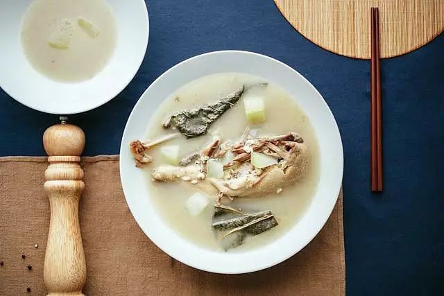 岭南的本地人,自然对一盅冬瓜荷叶老鸭汤不陌生,食谱如下:选取1000克冬瓜,少量鲜荷叶,冬瓜荷叶老鸭汤、赤小豆各50克,生姜4片、老鸭半只,猪瘦肉50克,拌入瓦锅,大火煮沸、小火慢熬,三四个小时下来,一锅老火汤就此而成。