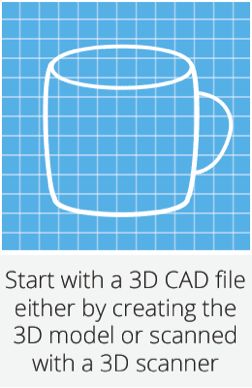 其工艺过程是,首先通过 CAD 设计出三维实体模型,利用离散程序将模型进行切片处理,设计扫描路径,产生的数据将精确控制激光扫描器和升降台的运动;激光光束通过数控装置控制的扫描器,按设计的扫描路径 照射到液态光敏树脂表面 , 使表面特定区域内的一层树脂固化后, 当一层加工完毕后,就生成零件的一个截面;然后 升降台下降一定距离, 固化层上覆盖另一层液态树脂,再进行第二层扫描,第二固化层牢固地粘结在前一固化层上,这样一层层叠加而成三维工件原型。将原型从树脂中取出后,进行最终固化,再经打光、电镀、喷漆或着色处理即得到要求的产品。