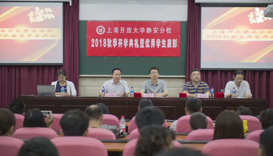9月21日晚,上海开放大学静安分校2018秋新生开学典礼暨优秀学生表彰大会隆重举行。上海开放大学静安分校校长蒋中华、开大办公室主任詹仲炜和招生办公室主任江海雄出席典礼。典礼由第六届学生会主席陈新兰主持,2018秋全体新生及优秀学生参加典礼。