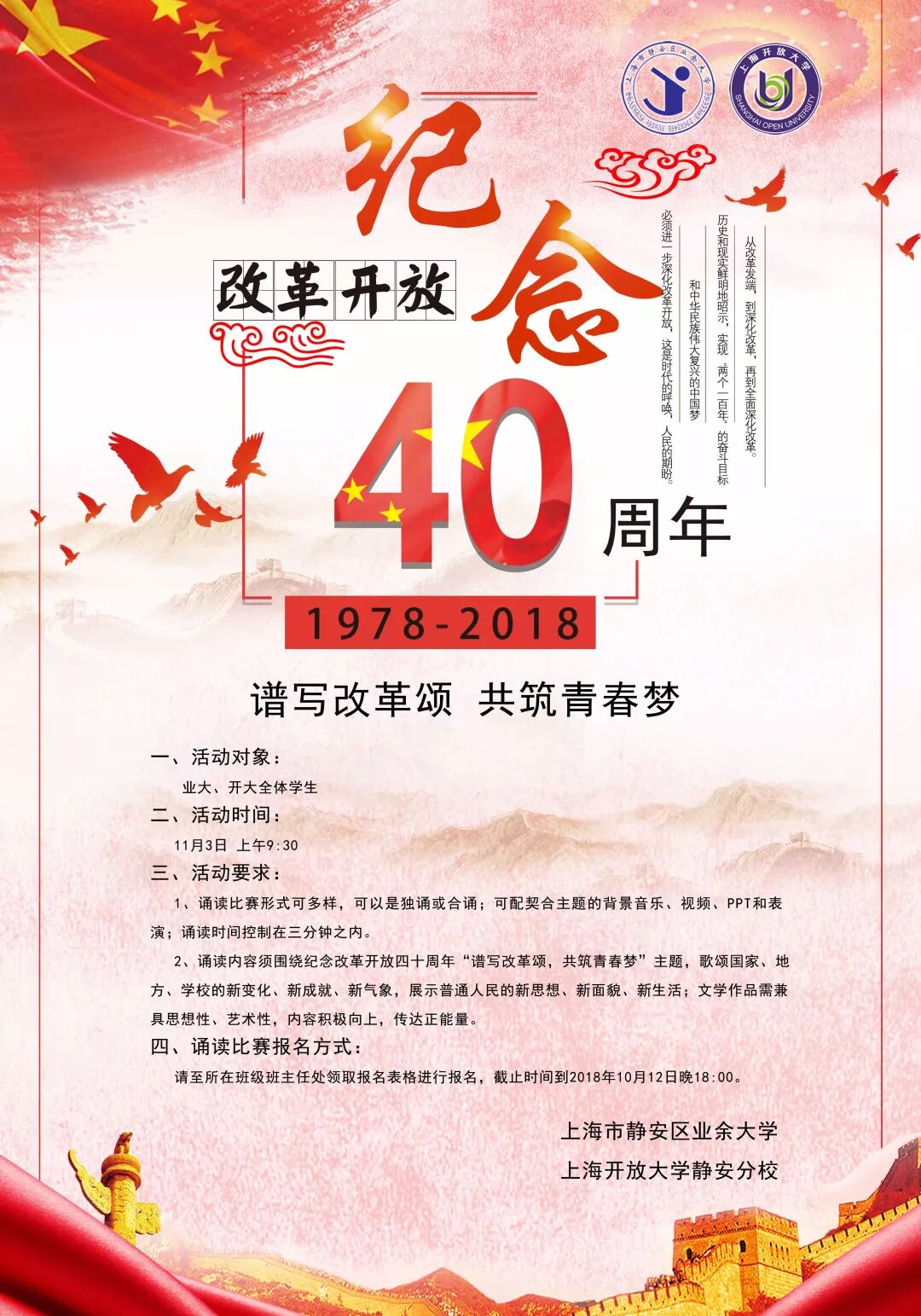 重磅消息!!为纪念改革开放40周年,热情讴歌改革开放伟大成就,抒发我校师生爱党爱国爱校、歌颂美好新时代的真挚情怀,展现师生团结拼搏,昂扬向上的精神风貌,我校决定开展以“谱写改革颂,共筑青春梦”为主题的诵读活动。