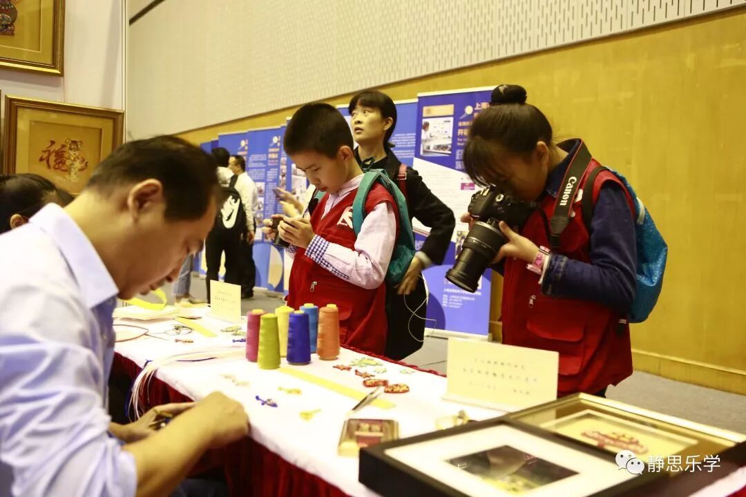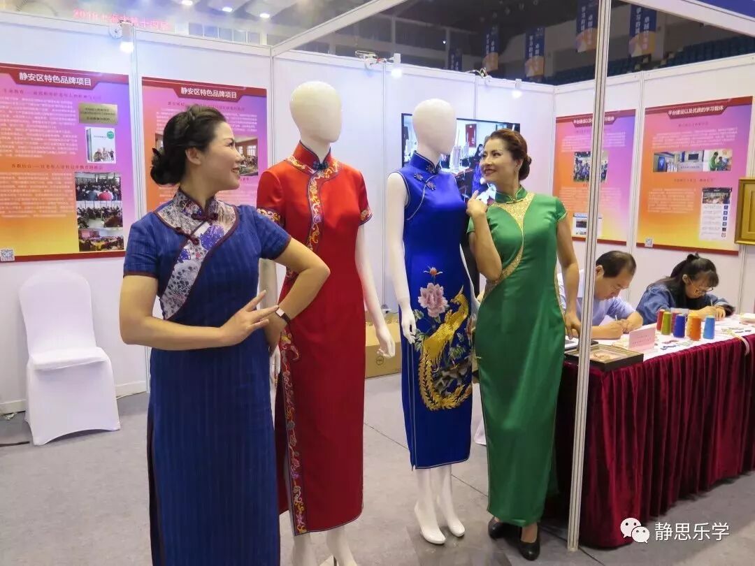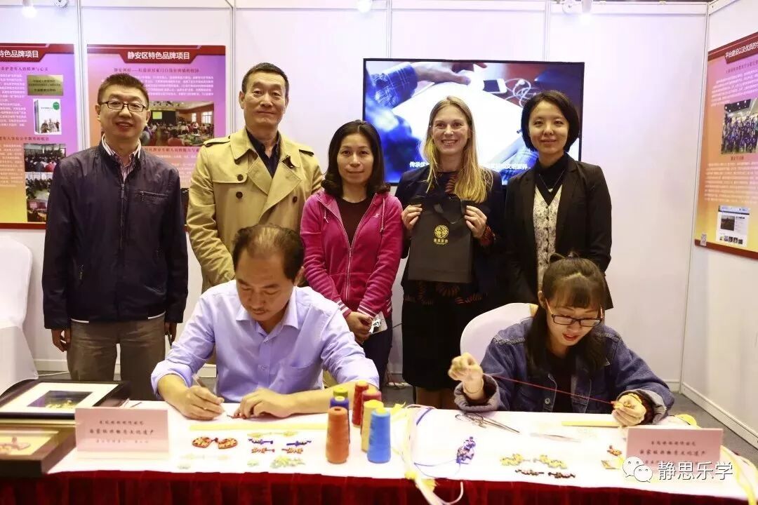 联合国教科文组织、上海市教委、上海市成人教育协会的领导、各区终身教育的同行及代表参观了本区展台。静安区教育局周晓春副局长为联合国教科文组织终身学习研究所的几位代表们送上了龙凤旗袍手工盘扣,代表们对制作精美的作品表示了高度赞叹。