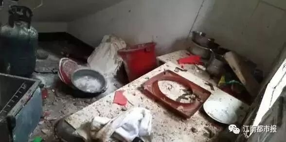 在江西省德兴市北门,铜都中学左对面,饶守坤公园附近有一居民屋发生了爆炸,房屋严重损毁,满地狼藉,周围邻居的房屋有不同程度的损伤。