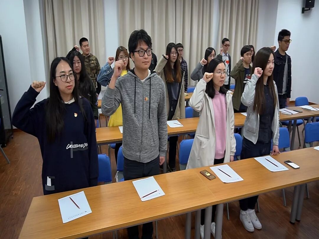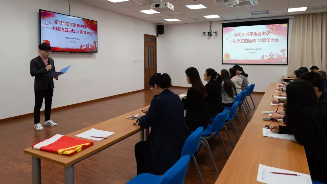 在收看直播前,团支部举行了重温入团誓词活动。全体团员齐唱国歌,团支部书记唐旻华领誓,大家面对团旗,紧握右拳,庄严宣誓,再一次接受思想洗礼,增强团员意识。党总支副书记沈燕华出席会议,她寄语广大青年团员,希望大家通过收看纪念五四运动100周年大会,学习习近平总书记重要讲话,在政治上、思想上、行动上和党中央保持高度一致,坚决听党话、跟党走。要立足岗位,以宋玉姐、颜阳等优秀学生事迹为动力,认识到所肩负的使命和责任,传承业大精神,发挥自己的作用;要融入社会,以市级文明单位建设为引领,投身社会志愿活动,为社会做出自己的贡献;要努力奋斗,凝集青年力量,共同努力,成为静安终身教育的筑梦人,让“601号”更亮。活动在嘹亮的团歌声中结束。