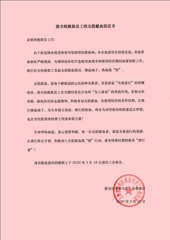号召大家撸起袖子,热“血”战疫