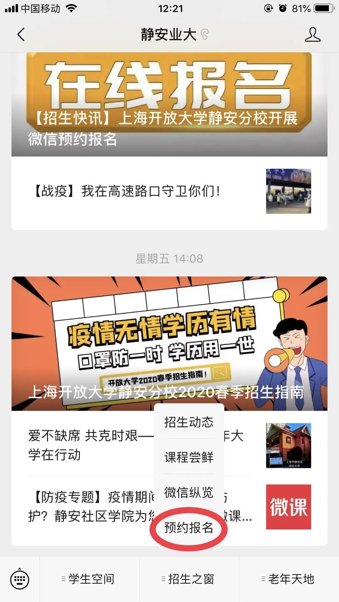 点击菜单栏中的“招生之窗”—“预约报名”按钮。