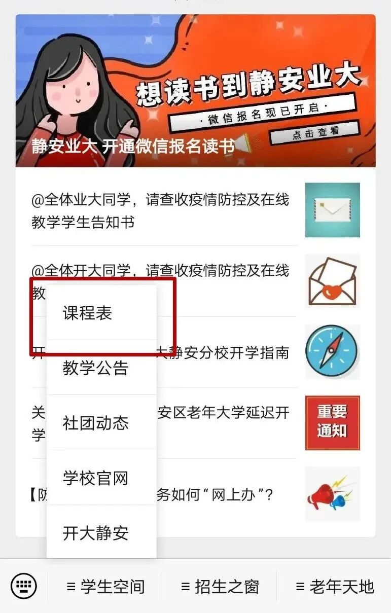 班级课程表和校历可在本公众号中查询