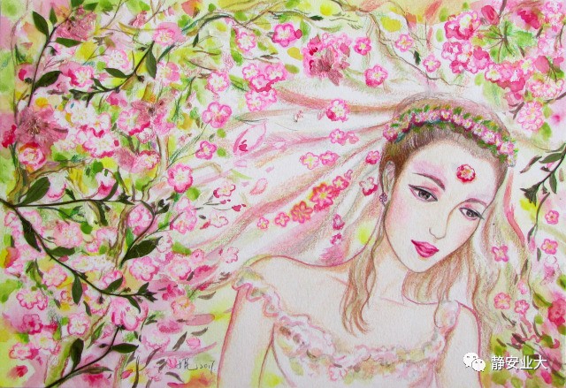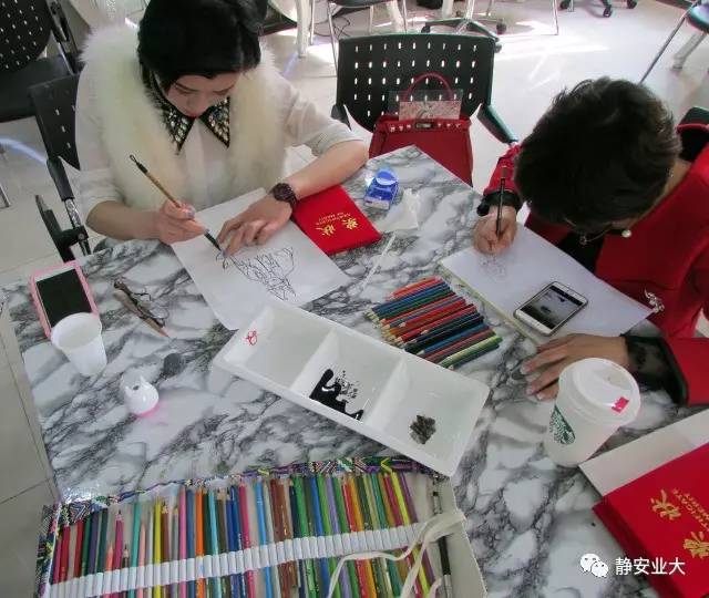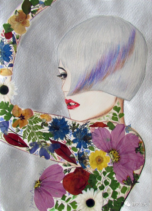 形象设计的学生都在认真绘制自己的作品,用彩铅和花瓣描绘出一幅幅不一样的人物插画。
