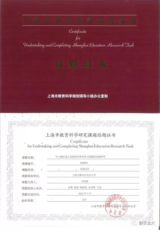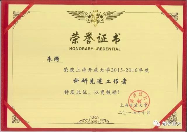 “2015—2016年上海开放大学科研优秀工作者”光荣称号