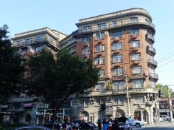 淮海路上还留下了邬达克的另一处作品——位于瑞金路口的爱司公寓(今瑞金公寓)。她也是邬达克早期的作品,散发着浓浓的古典韵味。外观混合了文艺复兴与西班牙风格,为霞飞路的异域风情增色不少。